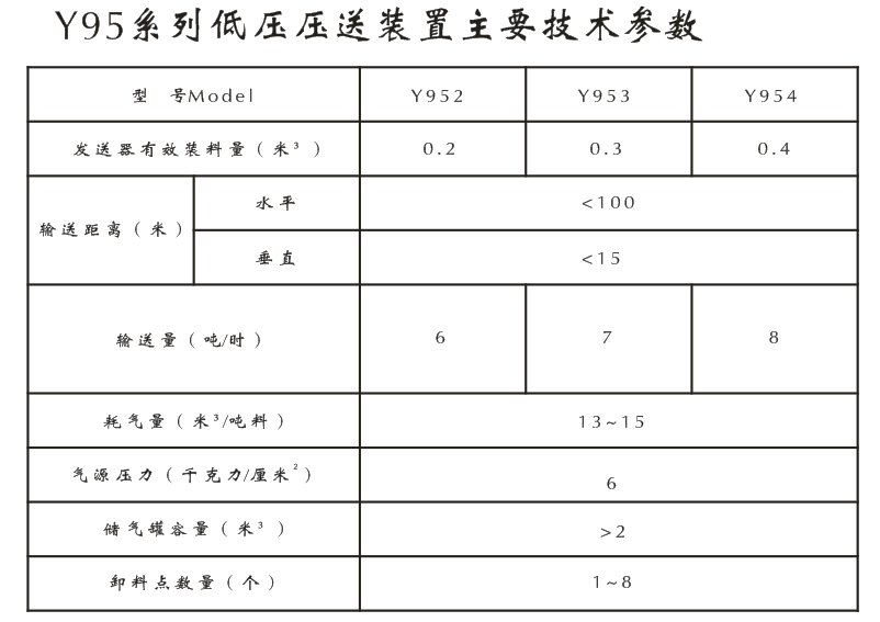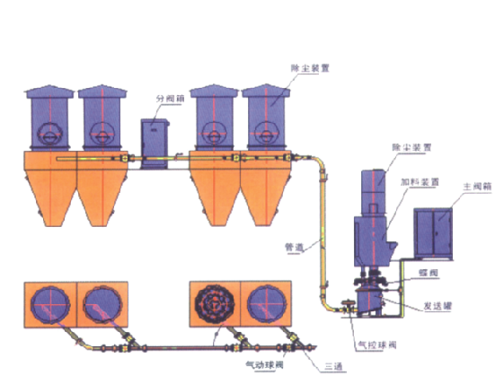 本装置是利用压缩空气的动能 来输送物料的。适宜于输送粘土, 煤粉、石墨粉、水泥、面粉以及化工、冶金、粮食等行业输送 各种粉状物料蛰输送的物料温度不 得超过50℃含水量应低于2.5%。