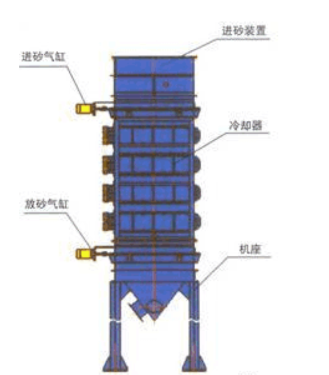 2、节能:本设备无需动力,采用生产线配备的冷却水,型砂依靠重力向下蠕动,通过控制下落过程达到控制砂温的目的。